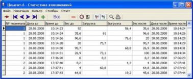 Во время работы программы значения веса записываются в базу данных. Фиксация значений происходит в моменты стабилизации веса на весовом терминале или смене направления изменения веса (загрузка/выгрузка).